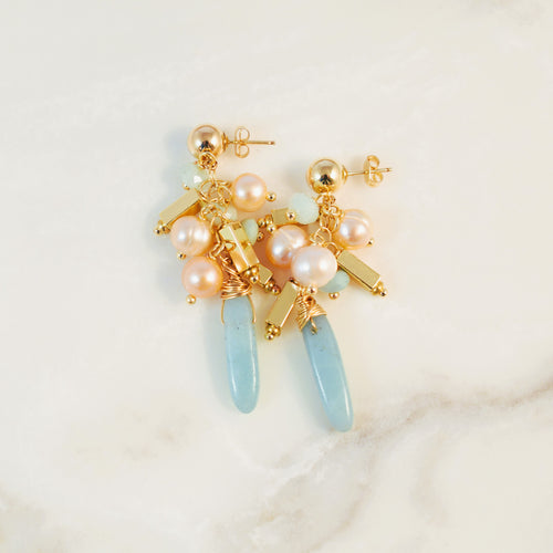 Crowned Mother of Pearl Mirrored Reflected Teardrop Post Earrings
